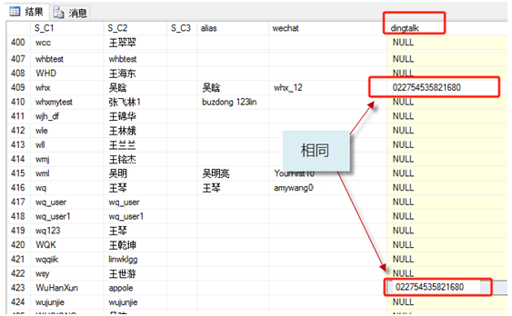 用戶提示不存在的判斷及解決方法 2023/11/15 分類:產品中心 產品手冊 問題中心 807 用戶不存在的判斷及解決方法 問題描述 今天whx 賬號登錄的時候 ,突然提示賬號不存在,無法登錄 進入后臺,通過人員管理模型查找賬號:whx 問題查找 打開數據庫管理器 進行數據庫查詢 SELECT TOP 1000 [S_C1] ,[S_C2]? AS NAME ,[S_C3] ,[s_C28] as alias ,[s_C30] as wechat ,[s_C43] as dingtalk ,[S_C4] As UKey FROM [OIOrg].[dbo].[OI_ORG_T008] 查詢后發現 本次出現這個用戶不存在的原因,就是 ,因為 這2個記錄相同了造成的 當然,用戶可能出現的情況有很多原因 ,這里明確一下 這個5個 字段,每一個字段里面 都不允許有重復數值出現 標簽:手冊問題 上一篇: 關于Gungho網站登錄后界面無反應的應對 下一篇: Excel數據導入Mobox低代碼平臺