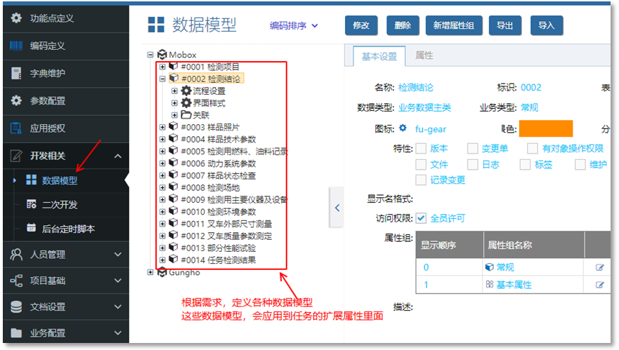 - 數(shù)據(jù)模型定義 (用于任務擴展屬性的定義)