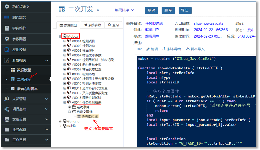 - 進入二次開發(fā) – gungho領域 – TASK任務 – 自定義事件