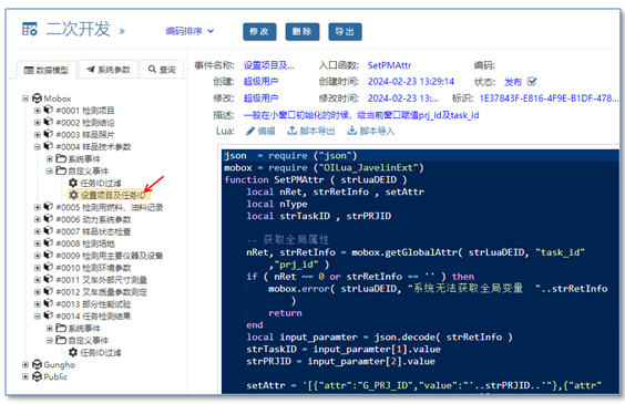開發(fā)一個腳本:任務點擊后 腳本 (目的是 任務點擊后能將 prj_id,task_id 等設置到全局變量)